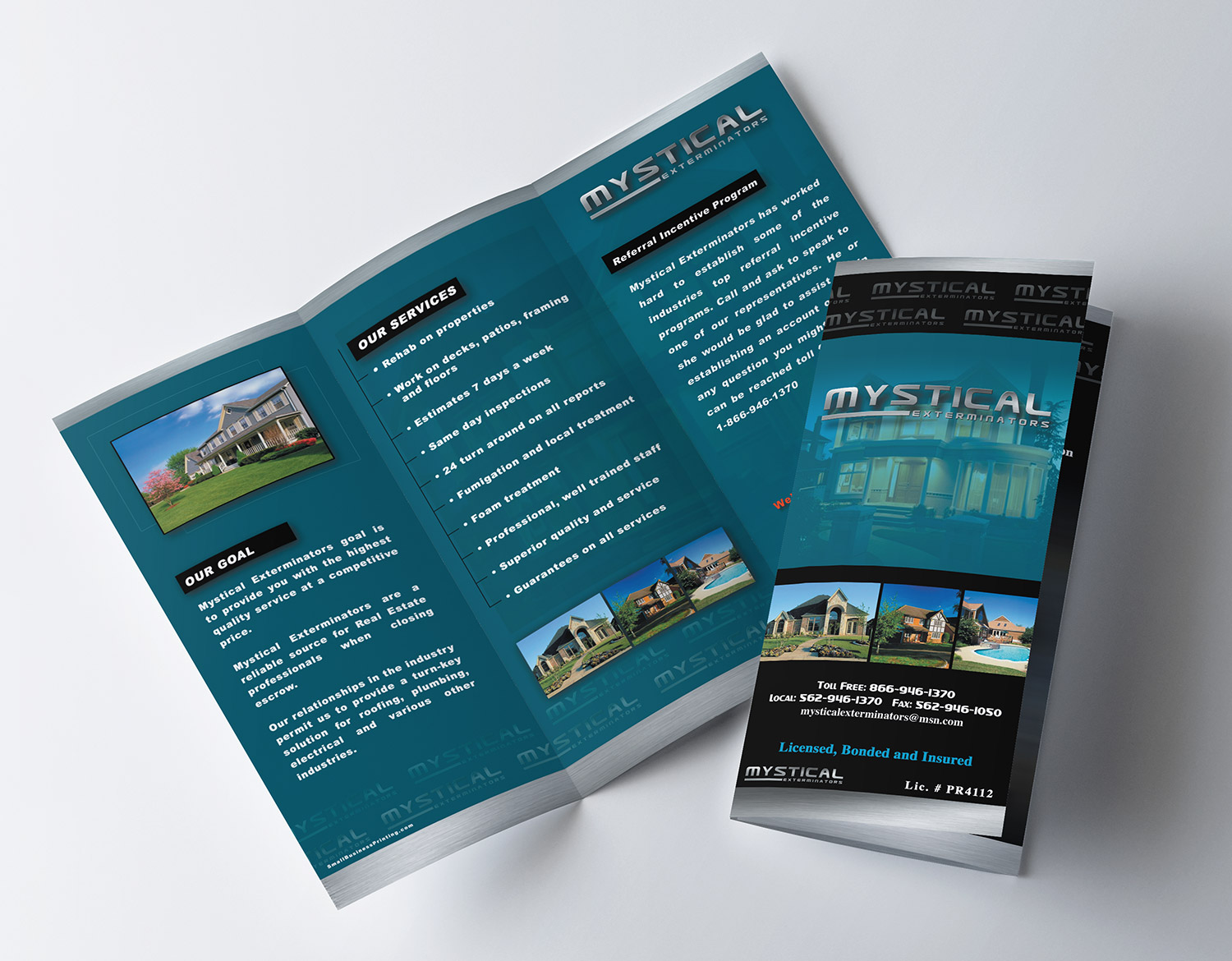 The custom brochures featured on this gallery are a small sampling of our previous work, custom designed for our past clients, and are presented to you in part so you can better understand our graphic design capabilities. Note: Due to image size restrictions and aesthetics we found it best to only feature the most popular 8.5" x 11" tri-fold size, but rest assured we can design and print just about any desired size or shape.
