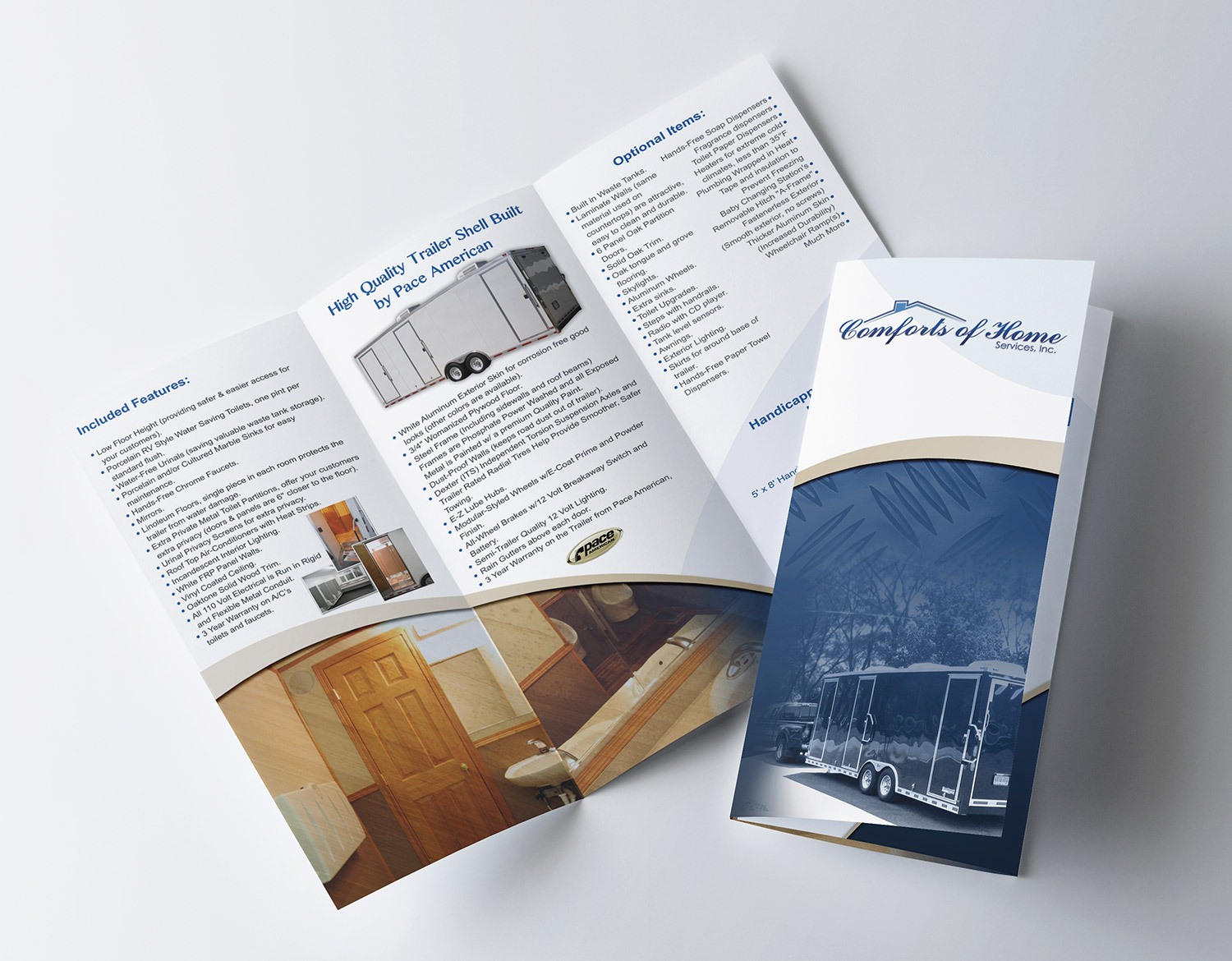 The custom brochures featured on this gallery are a small sampling of our previous work, custom designed for our past clients, and are presented to you in part so you can better understand our graphic design capabilities. Note: Due to image size restrictions and aesthetics we found it best to only feature the most popular 8.5" x 11" tri-fold size, but rest assured we can design and print just about any desired size or shape.