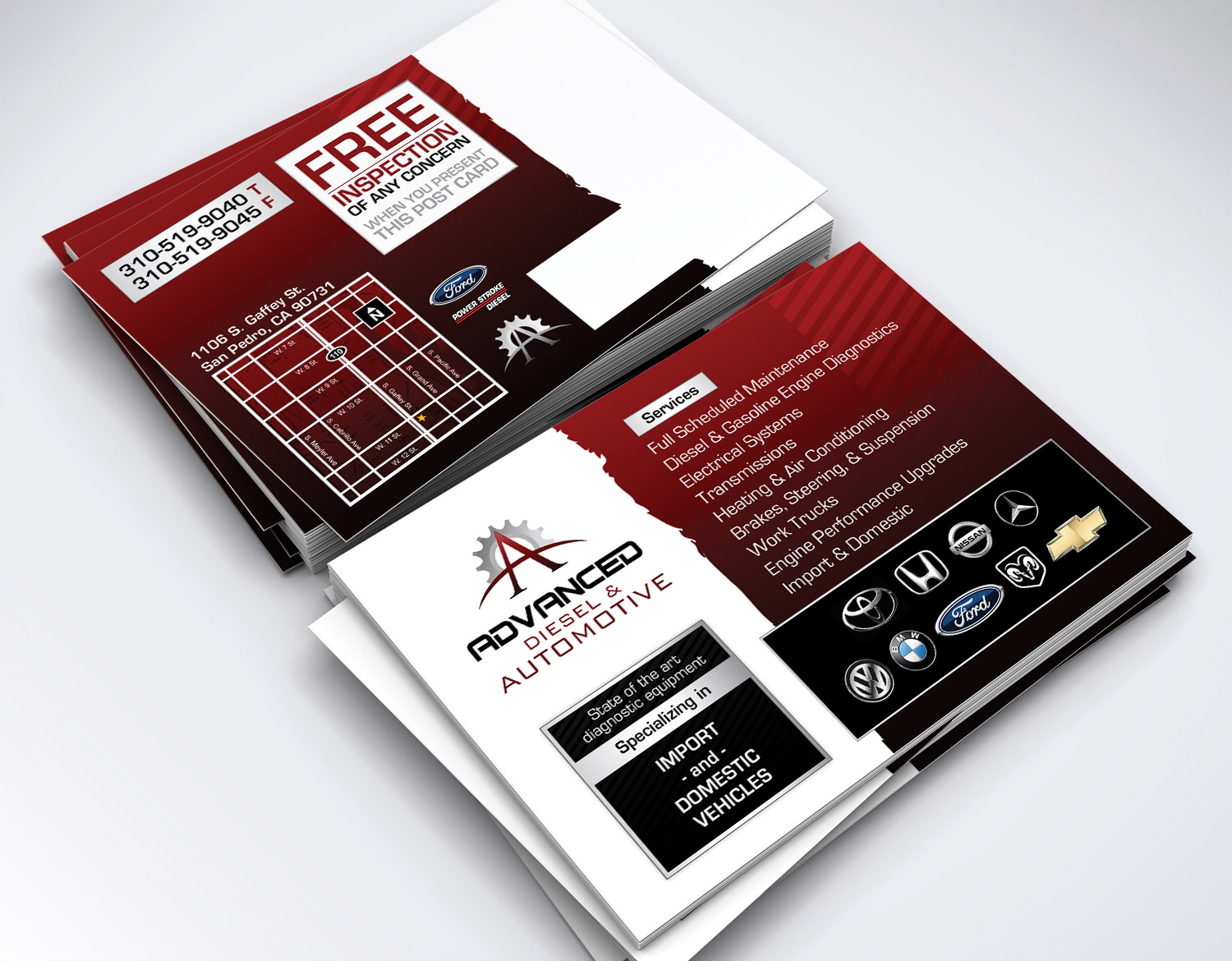 The custom postcards featured on this gallery are a small sampling of our previous work, custom designed for our past clients, and are presented to you in part so you can better understand our graphic design capabilities. Note: Due to image size restrictions and aesthetics we found it best to only feature a 5" x 7" postcard size, but rest assured we can design and print just about any desired size or shape.